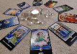 Die KartenWelche Karten soll man nun nehmen - es gibt ja mittlerweile tausende von Kartensystemen und Orakelkarten. Man wählt am besten solche Karten, in die man sich am besten einfühlen kann, damit man zu guten Deutungen kommt. Das sind beim einen vielleicht die Lenormandkarten, und beim anderen Engelskarten, Delphinkarten, oder was auch immer. Wie schon oben erwähnt, von der Schwingungsphysik her betrachtet, funktioniert Kartenlegen mit jeden Karten, ja es müssen noch nicht einmal Karten sein. Selbst Runnensteinchen oder I-Ging Stäbchen gehen. Die Karten sollten ein, in sich abgeschlossenes System bilden, so dass das gesamte Leben (alle Lebensprozesse) sich in den Karten wiederfinden kann. Das kleinste solche System wäre übrigens das Yin-Yang (weiblich-männlich). Man kann alles im Leben auf diese beiden Pole reduzieren. Das kleinst mögliche Kartensystem wären also 2 Karten, eine für Männlich, und eine Karte für Weiblich. In der Praxis will man aber mit den Karten dann doch komplexere Vorgänge abbilden und detailliertere Impulse erhalten, und so bestehen die meisten Orakel Kartensysteme aus mehr als 20 Karten. FragestellungenWie schon oben gezeigt, wird die Antwort immer eine Karte sein, mit Resonanz zur bewussten oder unbewussten Frage. Trotzdem kann die Antwort immer nur so intelligent sein, wie die Frage. Wenn die Frage schon dumm oder falsch gestellt ist, wird auch die Antwort nur den falschen Glauben, der in der Frage enthalten ist, bestätigen. Also ein konkretes Beispiel wäre, wenn jemand fragt, ist dieser Partner (oder Job etc.) gut für mich. Nun in der Realität hat ja alles eine gute Seite, und gerade in der heftigsten Beziehung kann am meisten gelernt werden. So wäre auf eine solche Fragestellung die Antwort eigentlich schon von vorneherein ja. So fragt man besser: Was erwartet mich mit diesem Partner (oder Job usw.) ? Man geht also in eine wertungslose Haltung, und schaut dann, was die Karten für Impulse aufzeigen. Kann man das Ergebnis einer Kartenlegung ändern ?Ja, man kann jederzeit durch eine bewusste Entscheidung die Situation ändern. Gerade, weil ja durch die Legung die aktuell wirkenden Energien bewusst gemacht wurden, kann man diese auch ändern. Besondere Karten