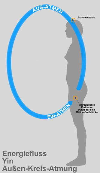 Immer wieder kommt es vor, dass wir im Außen etwas vorfinden, was uns widerstrebt, was wir von uns weisen, was wir nicht an uns ran lassen wollen. Dabei ist uns dies in vielen Fällen noch nicht einmal bewusst. Auf der feinstofflichen Ebene blockieren wir dann den Energieaustausch mit unserer Umgebung, damit ja nichts von dem, was wir als ekel oder abstoßend empfinden in uns eindringen kann. Wir stoppen dann den Energieaustausch mit unserer Umgebung.Ein solches Verhalten (auch auf der feinstofflichen Ebene) ist ja an sich in Ordnung, aber wenn es überhand nimmt (zum Beispiel wenn man öfter mit Menschen zu tun hat, deren Energie man nicht annehmen möchte), dann bilden sich irgendwann dauerhafte Muster aus, dass wir uns von unserer Umwelt energetisch abkapseln und dies dann irgendwann als Normalzustand betrachten. Besonders dann sind Übungen wie die nachfolgende, in der wir bewusst wieder den Energieaustausch mit unserer Umgebung einüben wichtig. Die folgende Atmung wird Yin Außenkreis Atmung genannt weil wir den natürlichen Kreis zwischen uns und unserer Umwelt wieder herstellen. Du kannst sie im Stehen oder aber auch im Sitzen praktizieren:
