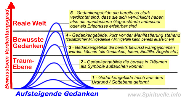 In der Grafik ist mit Punkt 4 die Situation dargestellt, wo ein einziger Gedankenimpuls ausreichen kann, damit das Gedankengebilde Wirklichkeit wird. Hier kann bereits ein kleiner Gedankenimpuls reichen, um das Gebilde in die real erlebbare Welt hineinzubringen.