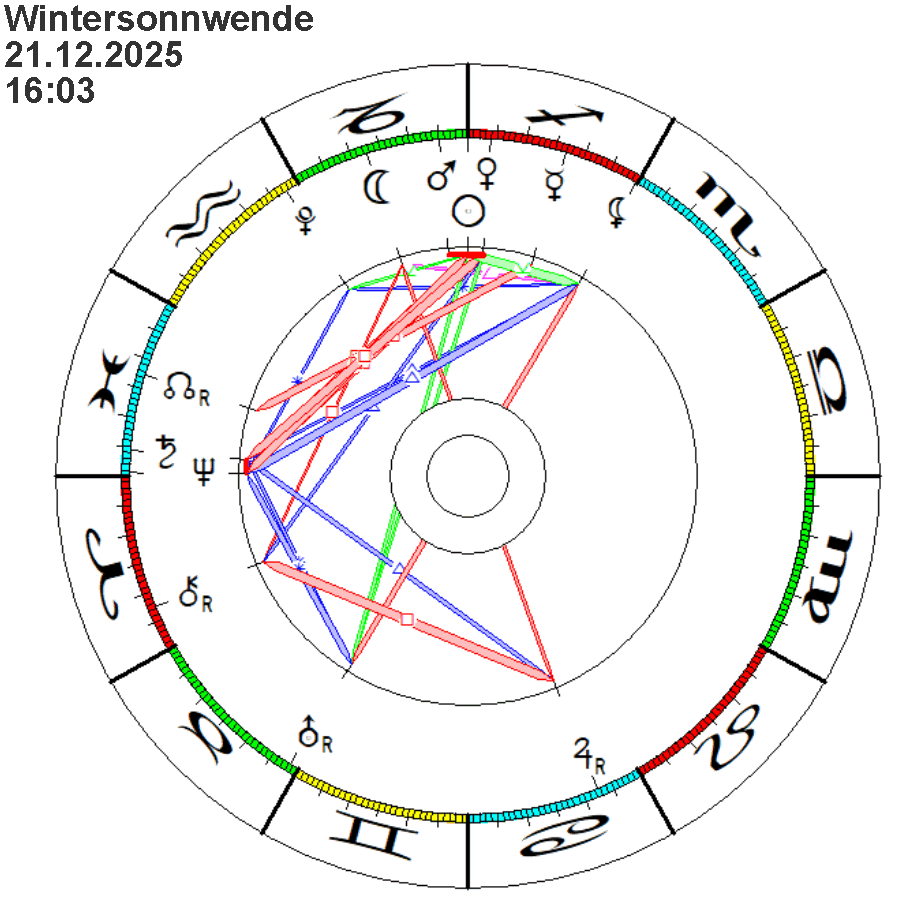 Ein weiterer markanter Punkt ist die Ballung bei Saturn und Neptun. Das feste Alte (Saturn) wird aufgeweicht durch Neptun. Kann ich also diese beiden Aspekte in mir in meinem Leben gut zusammenbringen ? oder nicht ? Wenn die neptunischen Energien zu sehr in Lüge existieren, dann wird das vermeintlich Feste (Saturn) aus meinem Leben wegbröckeln. Und ja, auch Uranus steht in diesem Horoskop machtvoll eingebettet. So ist die individuelle Wandlung im Menschen gut unterstützt, aber auch auf globaler Ebene sind viele Veränderungen zu erwarten, ja bis hin zu äußerst volatilen Börsenkursen in 2026. Hier nochmal der Link zum Video.